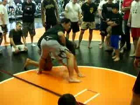Un detalle importantísimo es el movimiento final de la pierna, no se tira con los brazos, se empuja con la pierna que queda sobre la cabeza del rival.